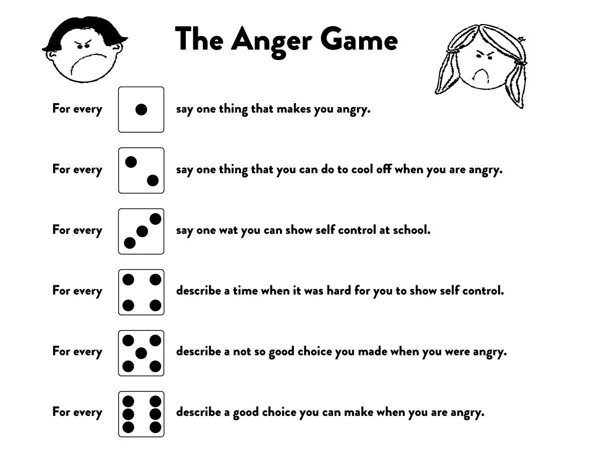 A fun anger-management game for kids that uses dice to help them talk about triggers, self-control, choices, and healthy ways to cool down.