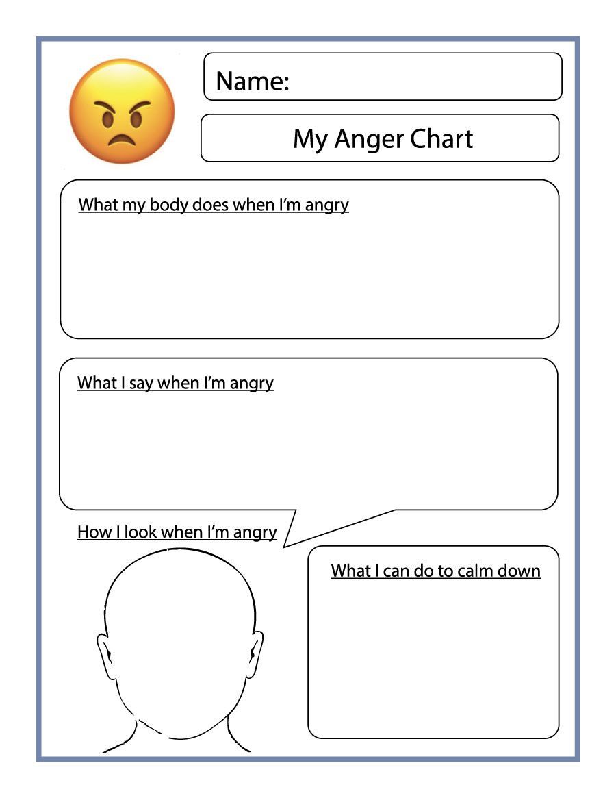 A simple anger chart for kids to identify body signals, words, expressions, and calming strategies to better understand and manage their anger.